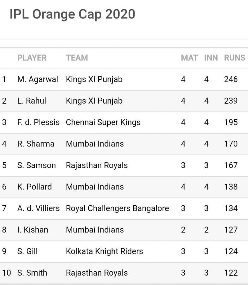 Orange Cap Holder In Ipl 2020 Mayank Agarwal Leading Run Scorer In Ipl 13 After Dc . Ipl Season 13 Team Standings, Purple Cap, Orange Cap Holder List.